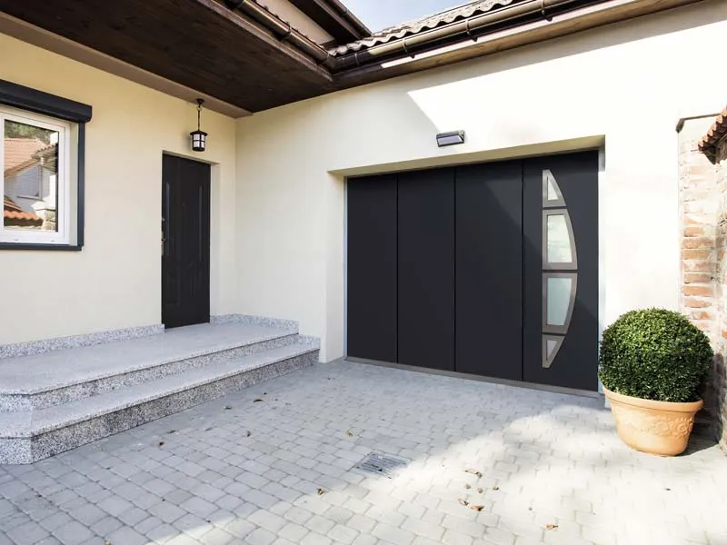 Toutes nos portes peuvent être motorisées (sauf les modèles pliants) pour un maximum de confort. L’ajout d’un portillon intégré est également possible, à l’exception des portes enroulables.
